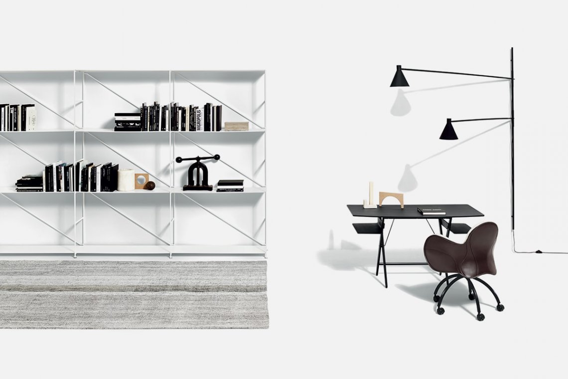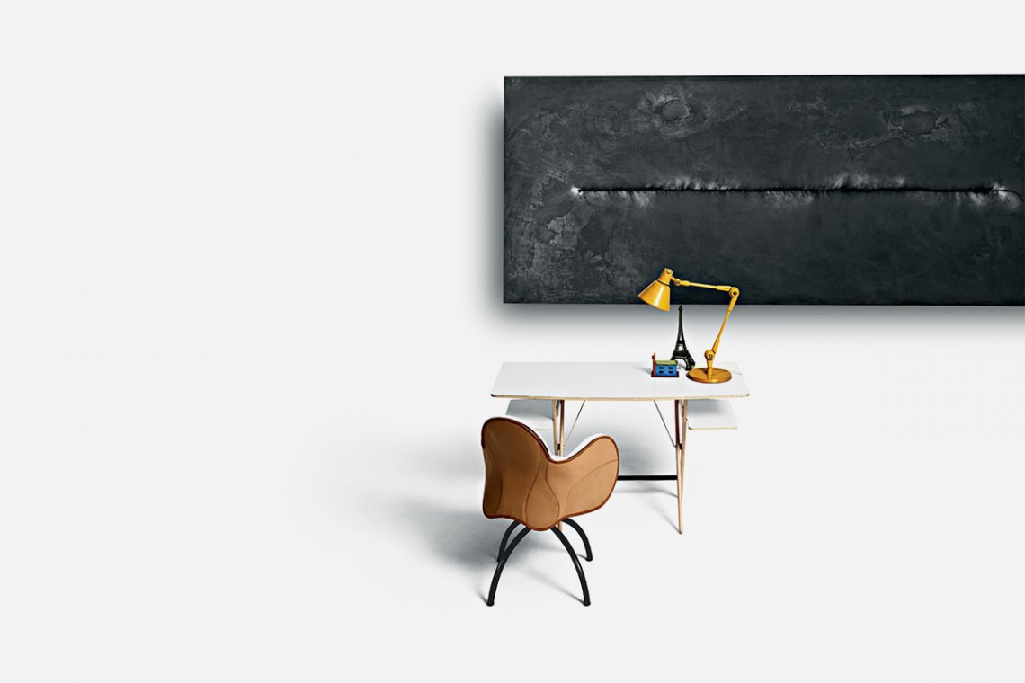 A perfect balance of form and function, the desk designed by Achille Castiglioni is a contemporary classic for the home office. The two side shelves, footrest and slightly rounded corners were created for precise, functional use. The lines are deliberately simple so that Scrittarello can be easily used in different settings.