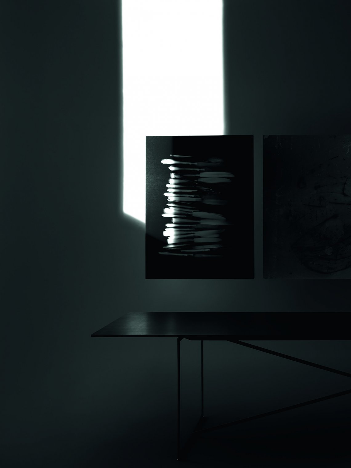 The main motivation behind the sketches of the T.?T.?A.? Table was to create a solution for a new table frame, based on an entirely generic structure.? Studies on Josef Albers – especially the optical experiments inspired the graphic expression.?