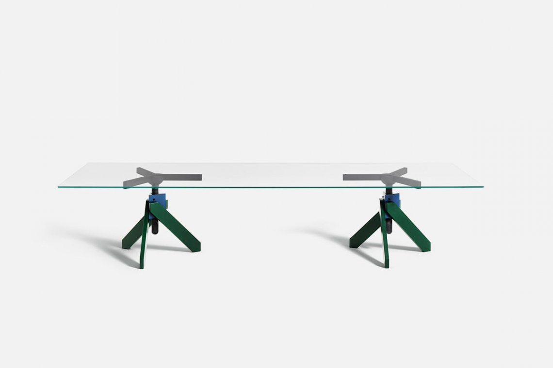 Inaugurating the De Padova table collection back in 1987, Vidun is still one of the most famous, recognized and admired projects by Vico Magistretti. A masterpiece of interlocking pieces that bring to mind a ‘vidun’, which means big screw in the Milanese dialect, it is made of natural, white or black beech wood in coordinated shades — purple with turquoise and green, red with yellow and duckbill orange — or black walnut. The sculptural and perfectionist glass top reveals the base.