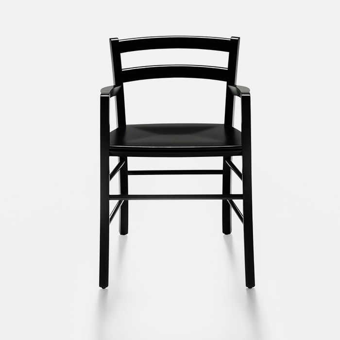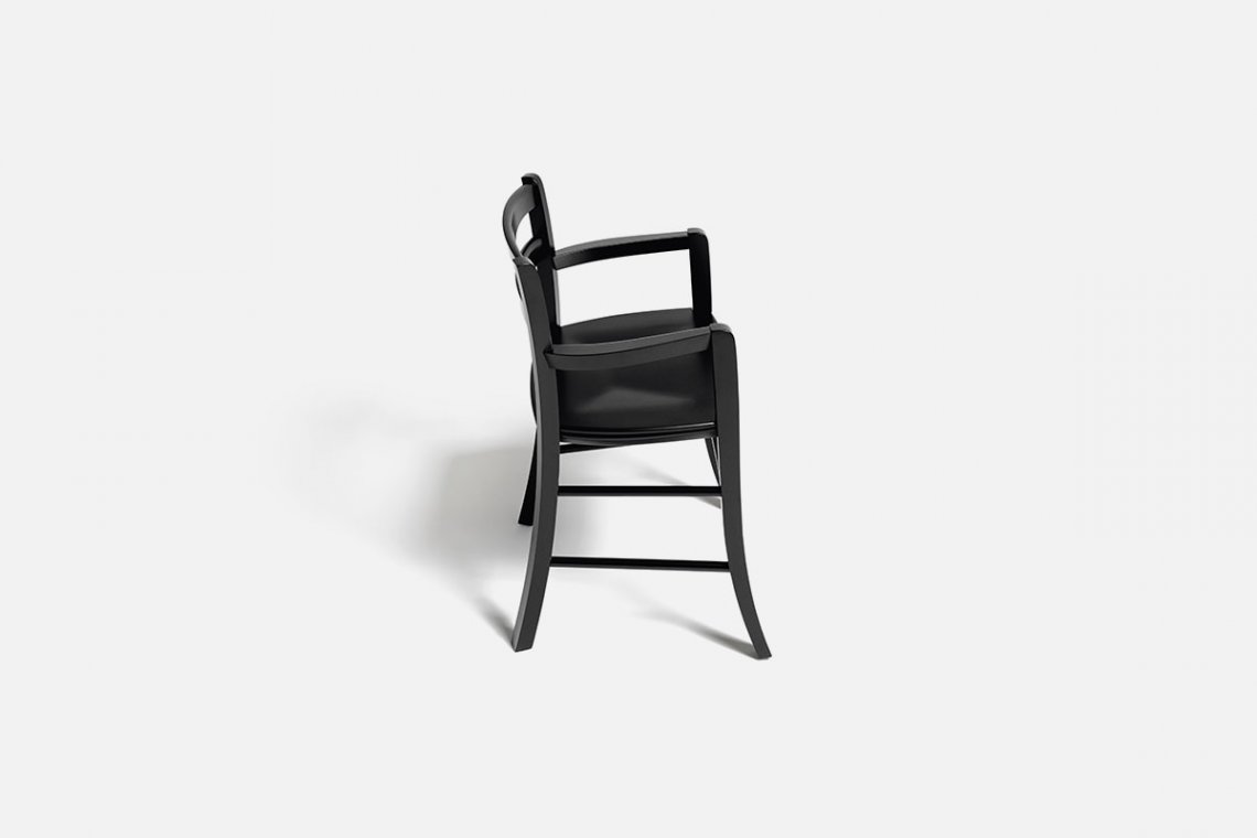 A perfect balance of form and function, this project by Vico Magistretti conceals within its simple lines particularly sophisticated construction details and meticulous artisan finishes. Made of black lacquered solid beech wood, Marocca is the ideal chair for large dinners with family and friends.