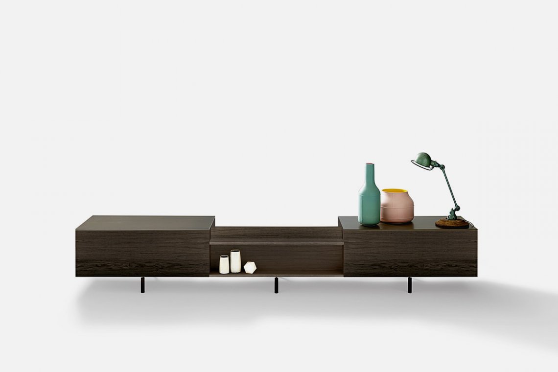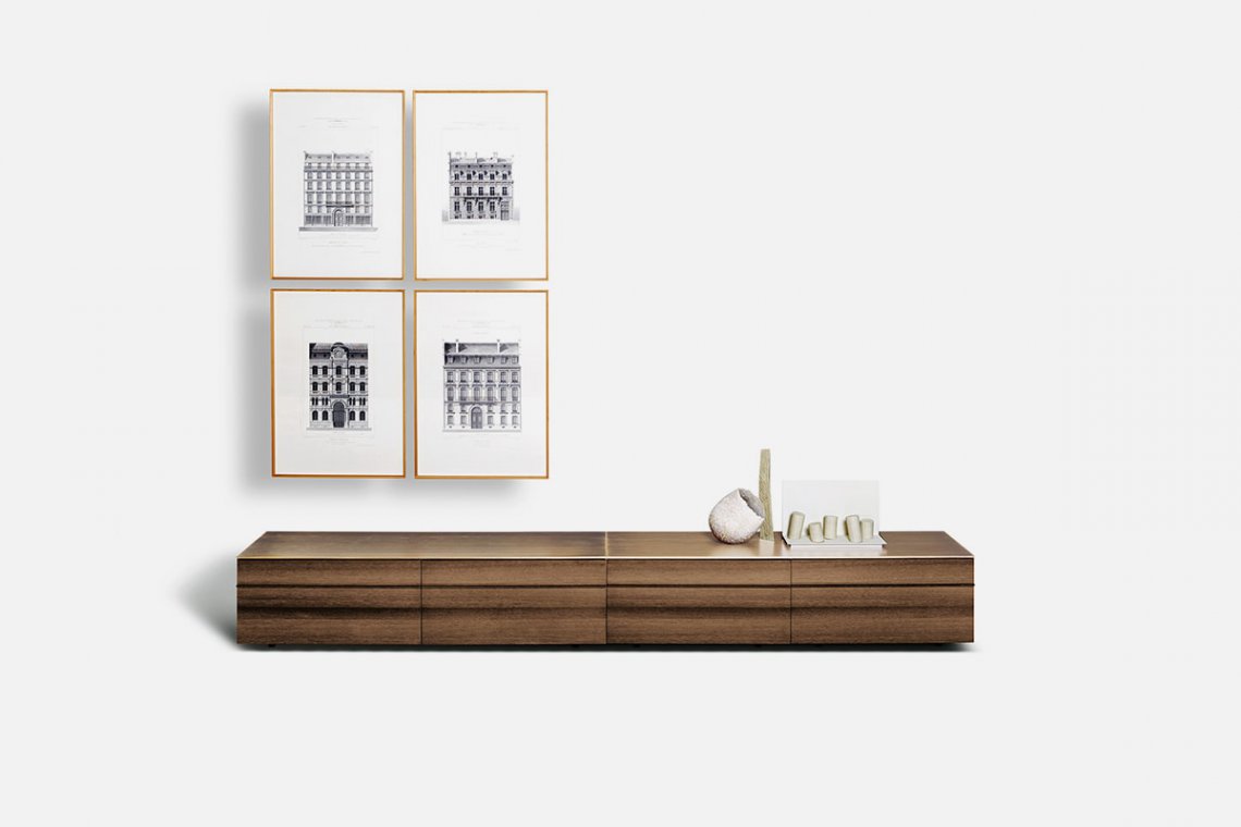 Each is a one-of-a-kind piece. The SC16 cabinet system is not just roomy and versatile. It is enhanced by the absolute quality of the raw materials chosen with care: Fossil oak and smoked oak. In a successful balance of craftsmanship and beautiful veining, the wood essence is the star, supported by a light base in matte black steel.