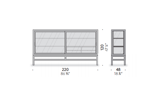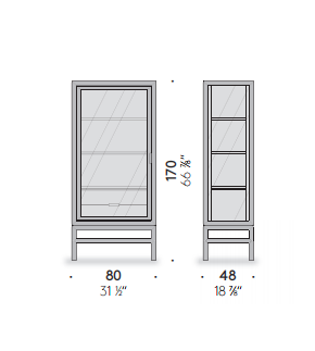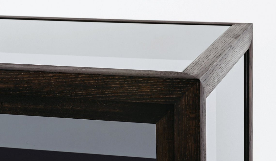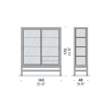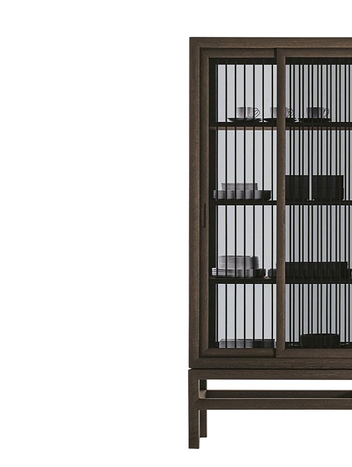 Silent cabinet was created to express the sensuous Japanese beauty as a modern piece of design. It is designed with five glass sides, to let in natural light and illuminate the items inside evenly. The sliding doors mounted on rails make it possible to save space regardless of their width. For one side of the cabinet, lattice doors can also be selected. The lattice door references traditional Japanese design, with a pattern made of thin and delicate wood pieces. The six-millimetre width of the pieces and the spacing between them are designed to harmonize Japanese tranquillity and modern taste. The presence of items inside can be perceived on both the front and back of the cabinet.