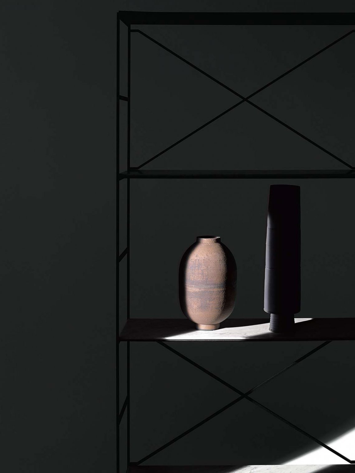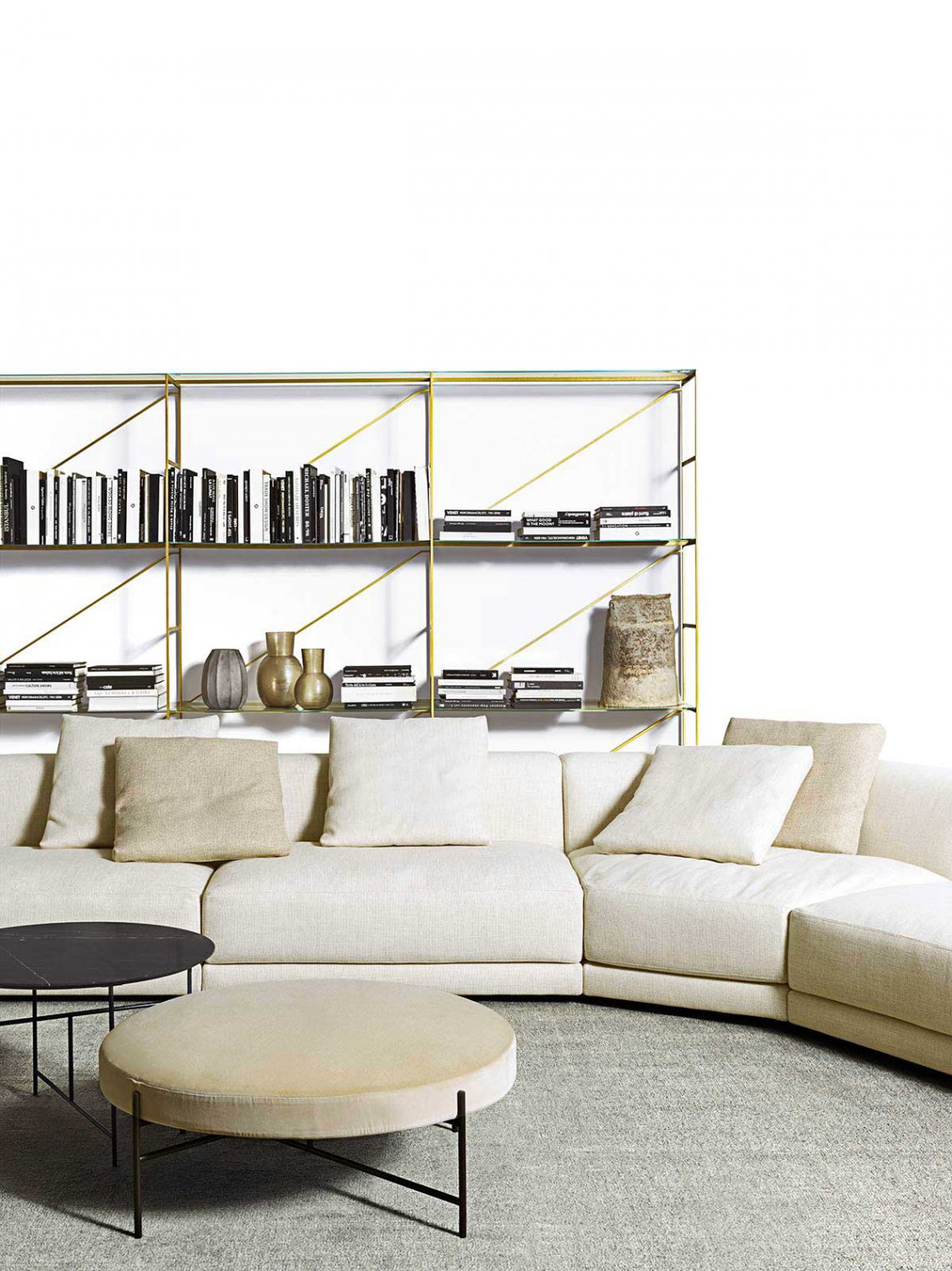 Only a handful of components, that connects in numerous ways, all attached by using the universal screw; “R.?I.?G.? joint”, creates this diverse shelving system.? An uncompromised choice of materials and the graphic stabilizing system ensures a stunning stability.?
