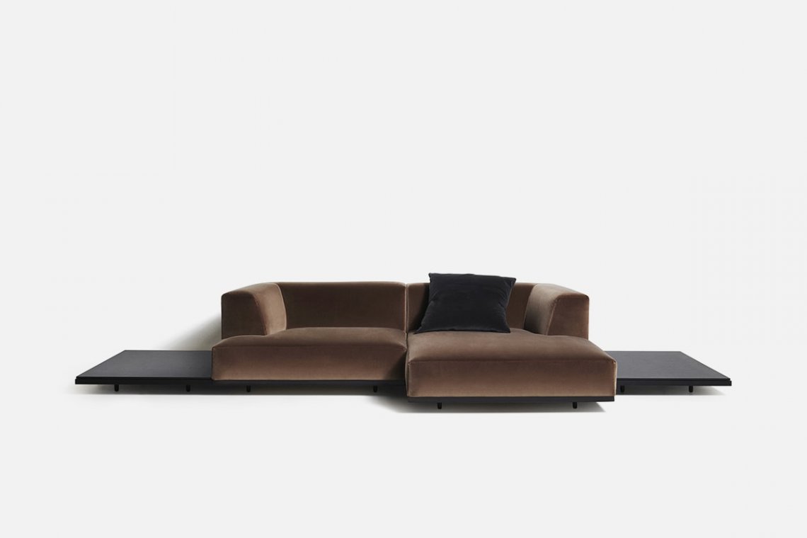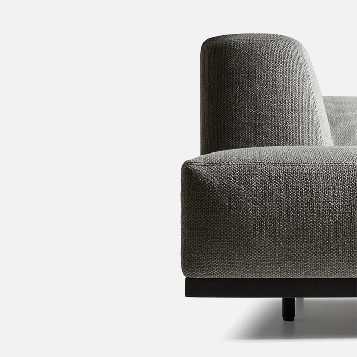 The prominent proportions of Alberese Wood offer a reassuring presence without coming off as bulky. It marks the 2021 evolution of Alberese. Framed by a Dark stained oak structure, Alberese Wood is a nod to nature and the landscapes of Maremma with its soft contours that delicately capture the perfect lines of the frame. The sofa continues laterally beyond its endpoints, modeling itself into molded, small square or rectangular tables that are available in a free-standing version with tabletops in Dark stained oak wood or marble. The system shares a deep seat done in single modules, as a corner sofa or as a chaise lounge and pouf – design solutions that are different each time.