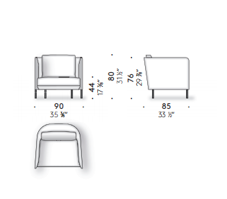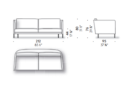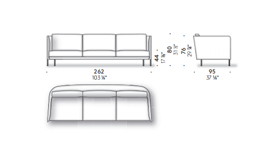 The light lines of designer Omi Tahara have a strong common thread: an enveloping structure that balances the sleekness of the seating. The large cushions are soft and inviting, creating a successful contrast that makes the space particularly comfortable and flexible. An armchair completes the collection.