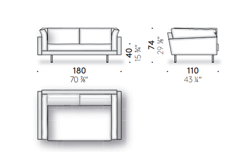 Geometric elements, squared lines, it has a particularly comfortable, soft, regular seat and edges defined by distinctive seams. Both the fabric and leather versions are the perfect solution for various living room layouts.