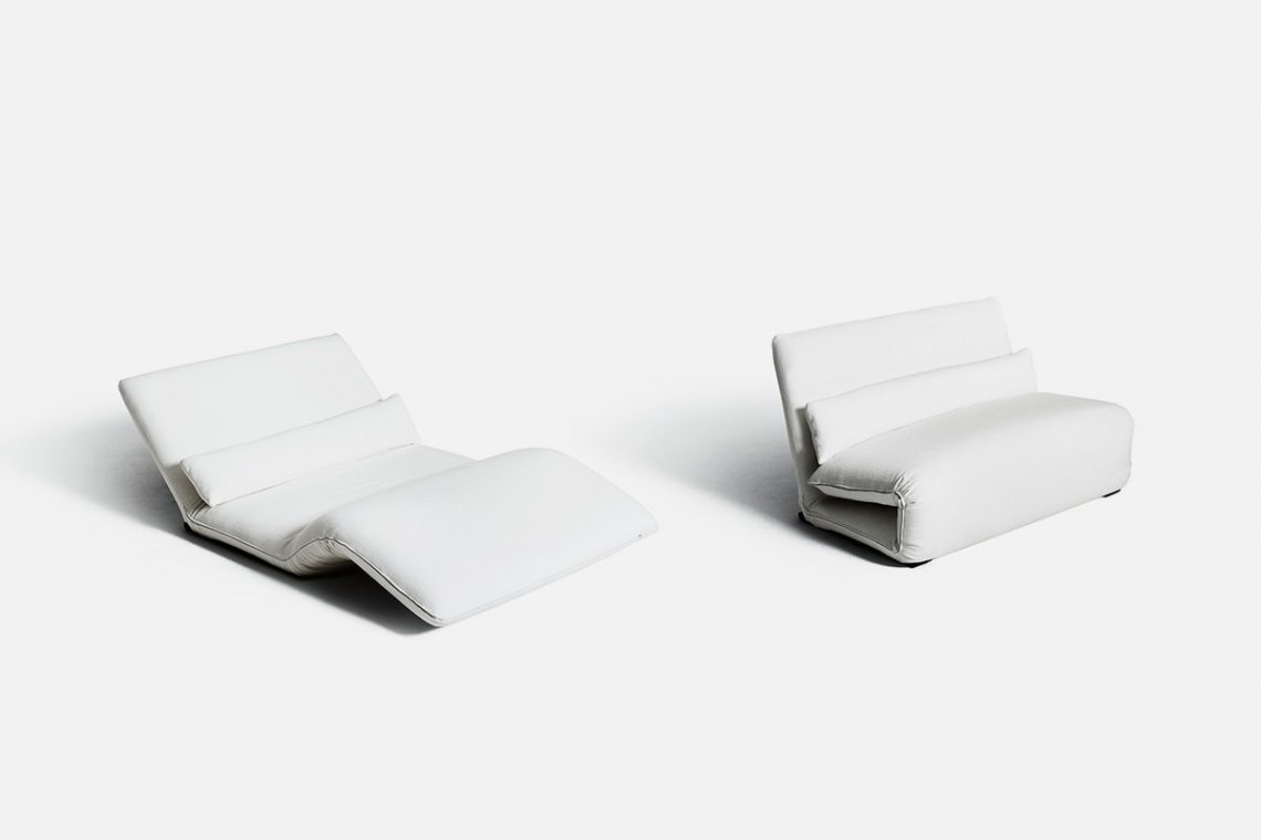 Armchair, chaise longue, and bed. All in one. The Japanese-inspired project is by designers Ingo Maurer and Jan Armgardt: the position of the different elements of the frame can be modified and inclined for reading or napping, for an unexpected overnight guest or just for watching a film, alone or in company. In every case, it’s extremely comfortable.