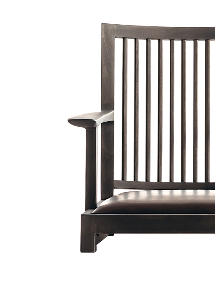 This object belongs to a Japanese lifestyle, but it adds a contemporary twist. ‘Zaisu’ is the chair that sits directly on the floor and combines tradition and modernity. Each vertical element forming the back is sanded by hand to obtain slightly curved edges, which makes the chair truly comfortable and a perfect balance of past and future.