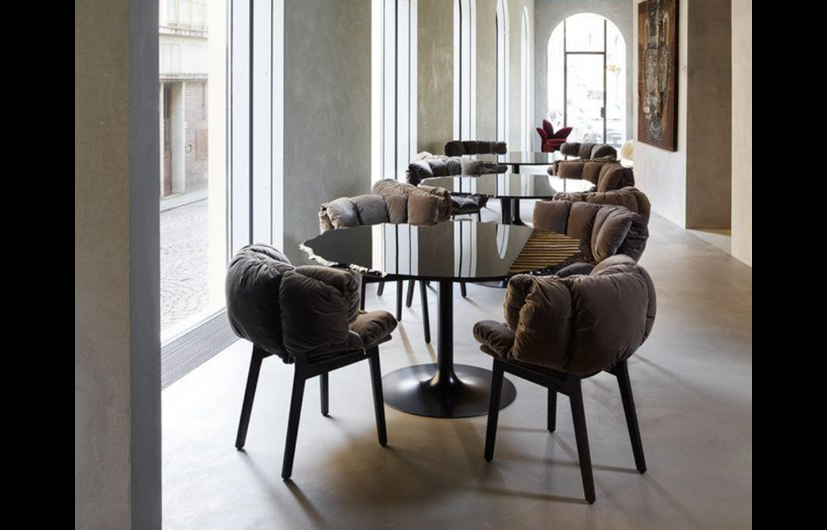 A splinter. A big fragment of faceted glass with a thick irregular edge that recalls the rugged coastline of the islands of the Egeo sea, from which it takes the name.