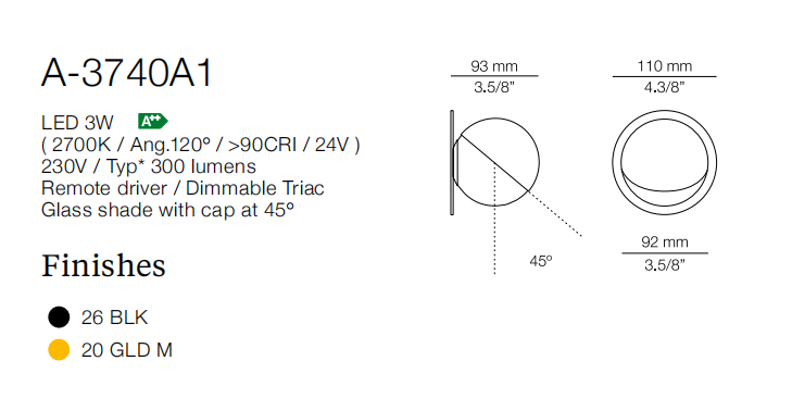 The perfect, minimalists orb, with front cap for indirect lighting or angled down, left or right for asymmetrical light. Or, leave it undcovered for brilliant illumination.