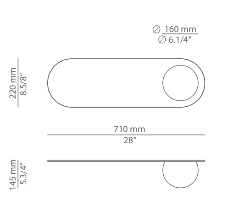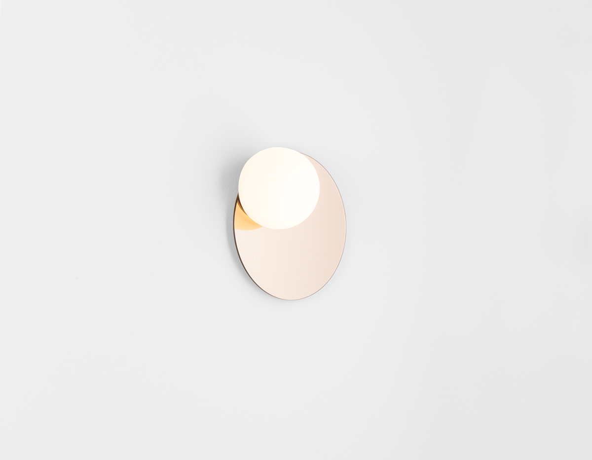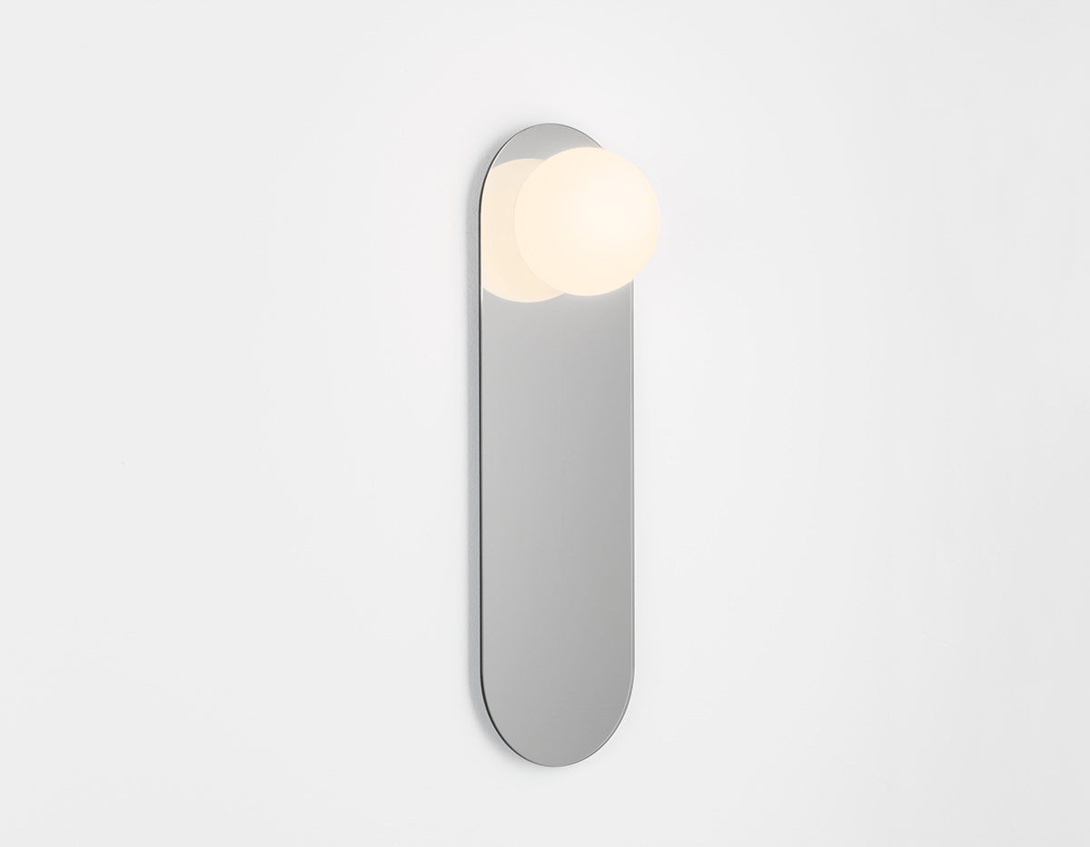 Illuminated decorative mirror with glass shade and integrated dimmable LED.