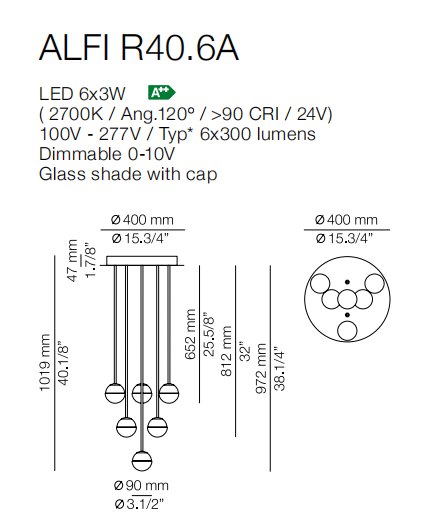 Delicate as a flower and as functional as a pin, Alfi's light emerges from a glass orb, softened with a metal cap. Linear and curved modules can be put together to create suspensions that meander across the ceiling as well as form oval, square or linear configurations. Metal stems on ball joints at the canopy enable easy adjustment.