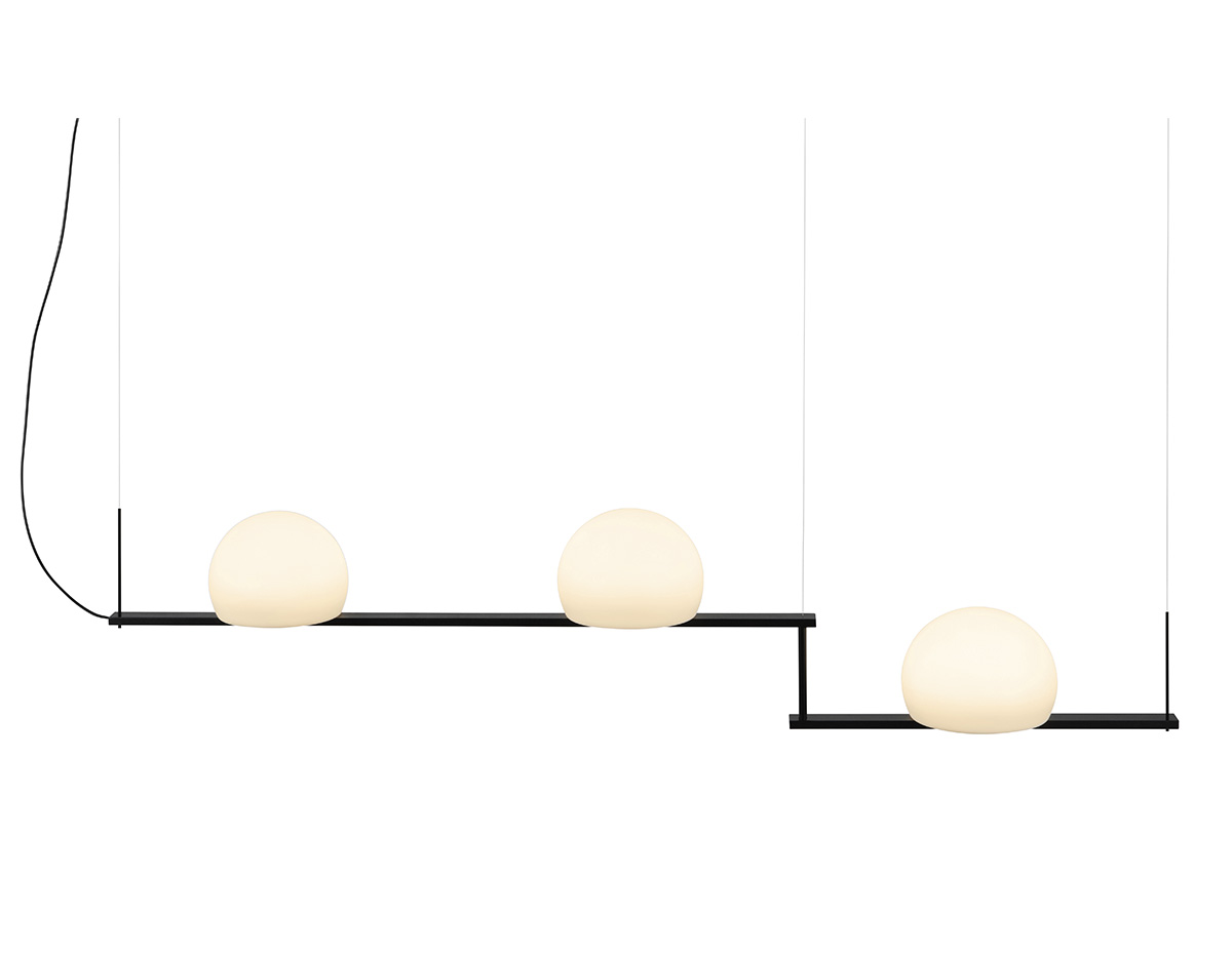 T-3716: Suspension lamp with three glass shades. It has a rotating arm that allows you to install the lamp at an angle.