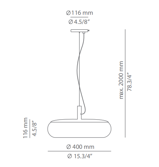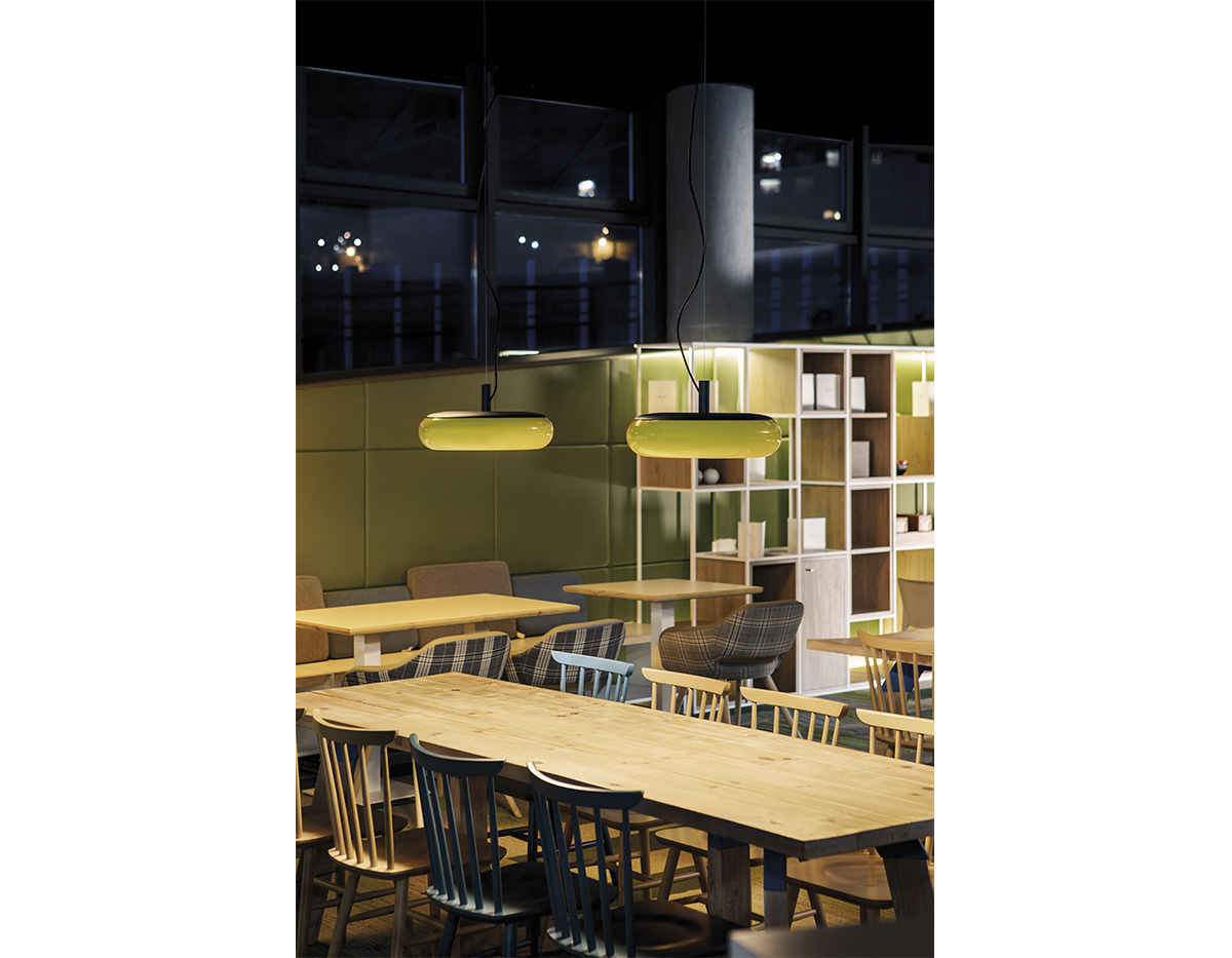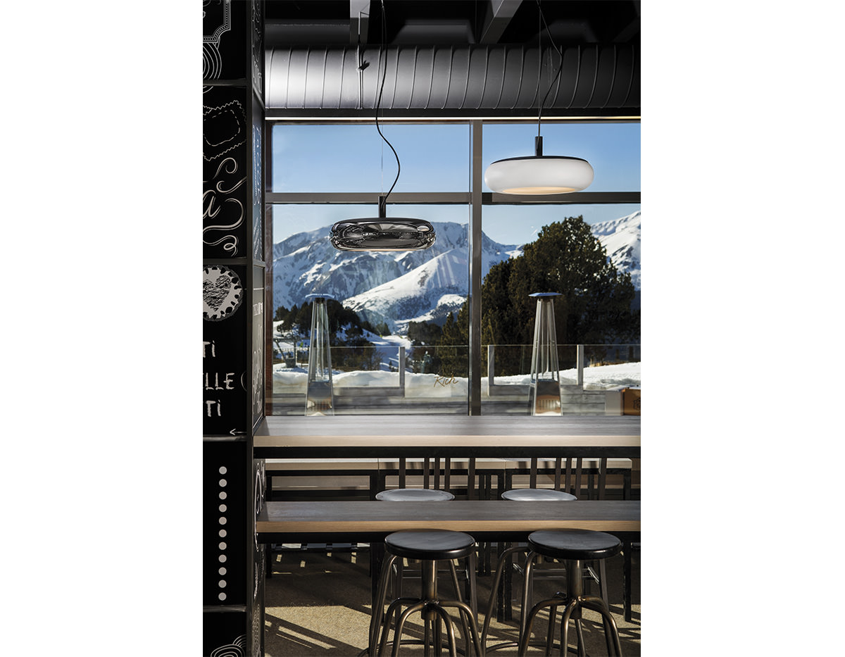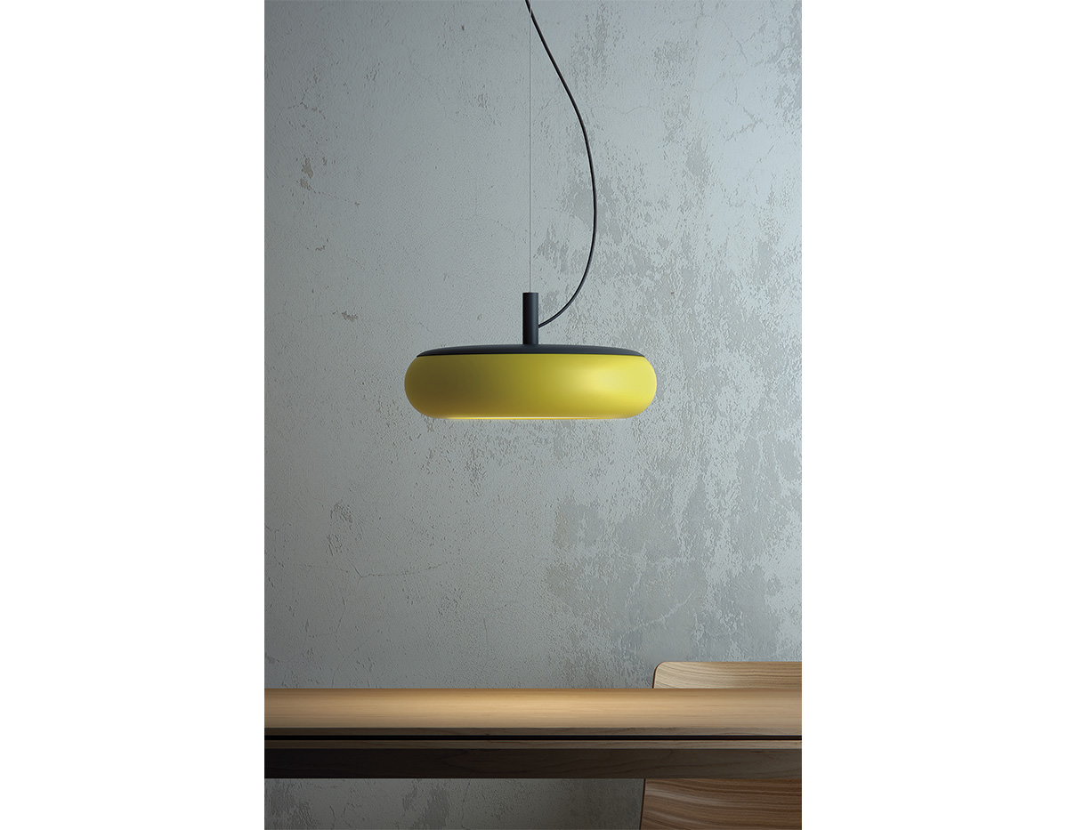 Metallic suspension lamp with acrylic diffuser. Integrated dimmable LED and adjustable height