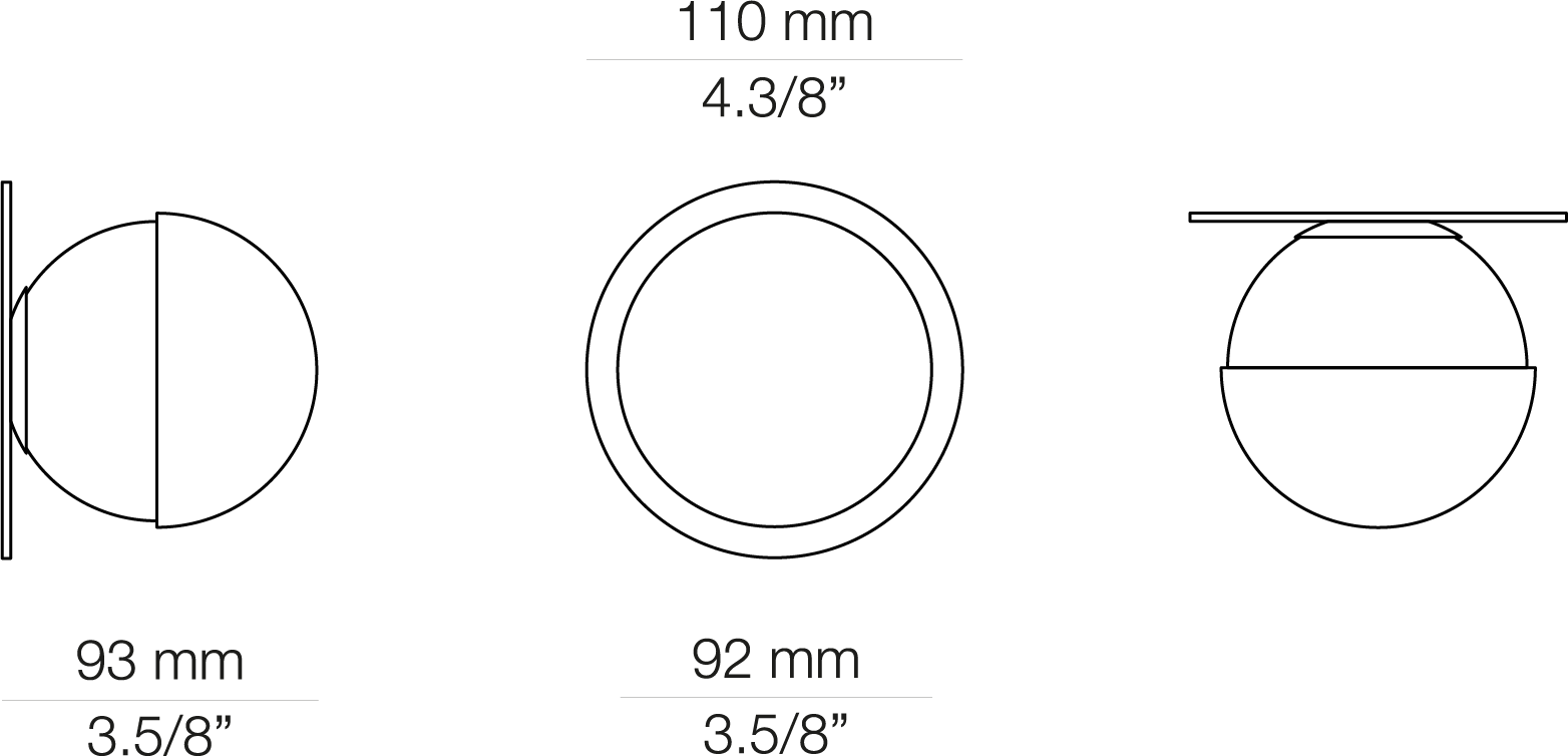 The perfect, minimalists orb, with front cap for indirect lighting or angled down, left or right for asymmetrical light. Or, leave it undcovered for brilliant illumination.