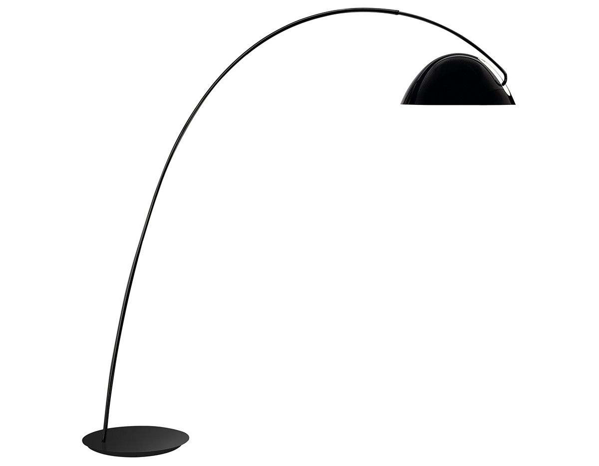 Metallic arc lamp with acrylic shade and extensible swing arm. Optional bottom methacrylate diffuser. Cord dimmer.