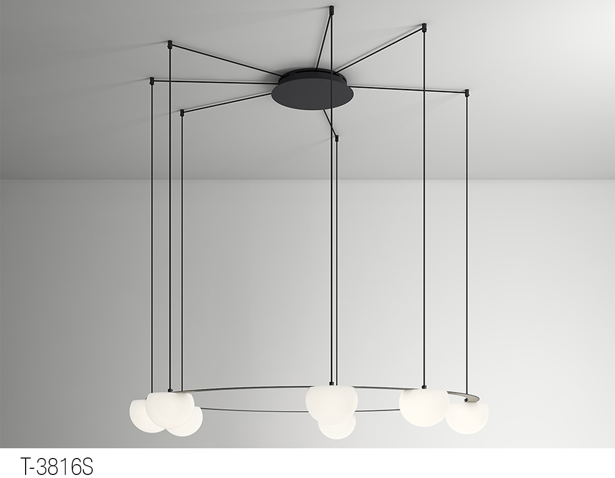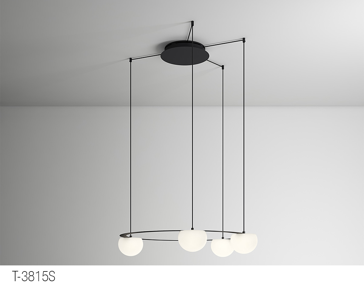 Possibility to create different compositions combining this suspension lamps with t-3810 / t-3811 ceiling lights or t-3810AS / t-3811AS ceiling lights with acoustic panels
