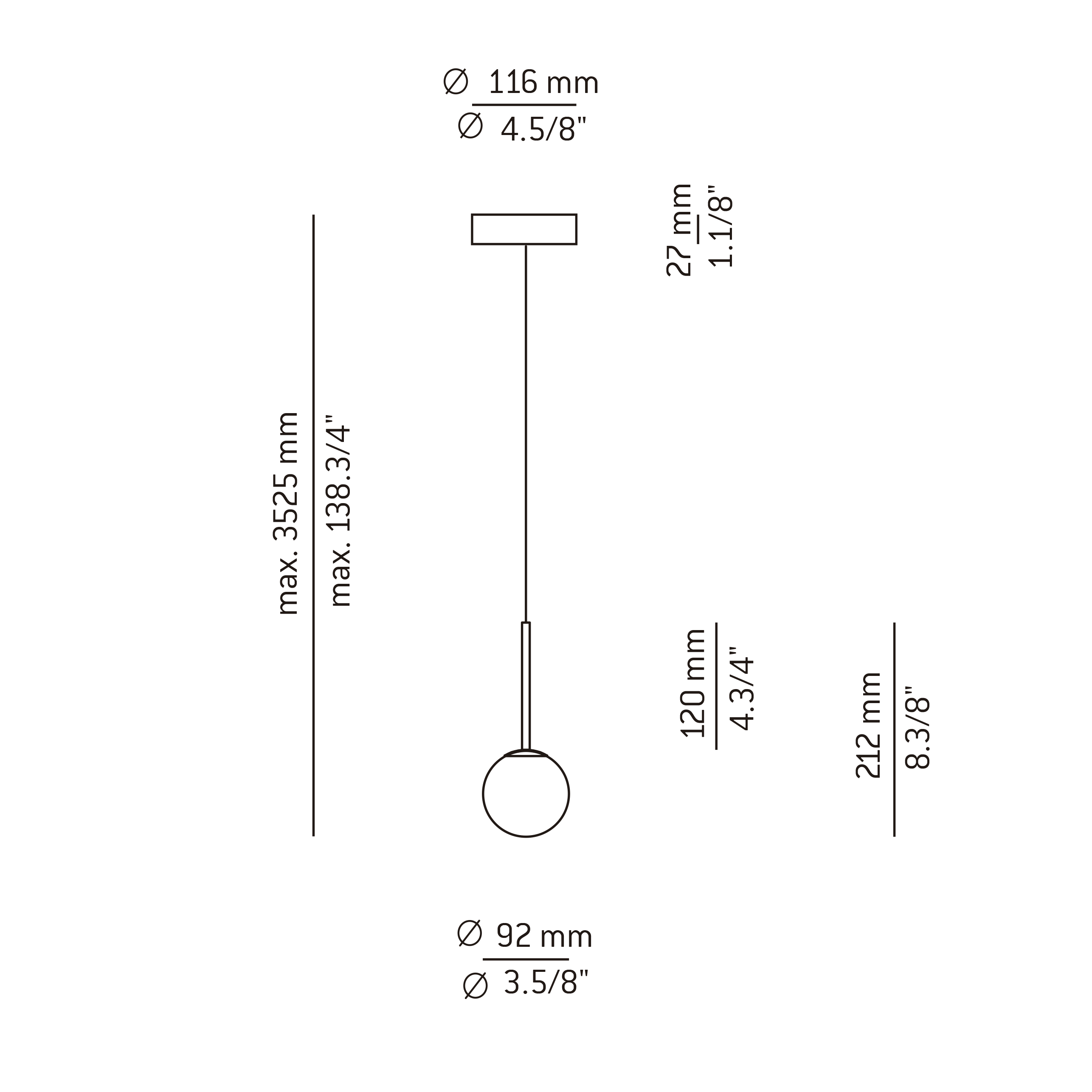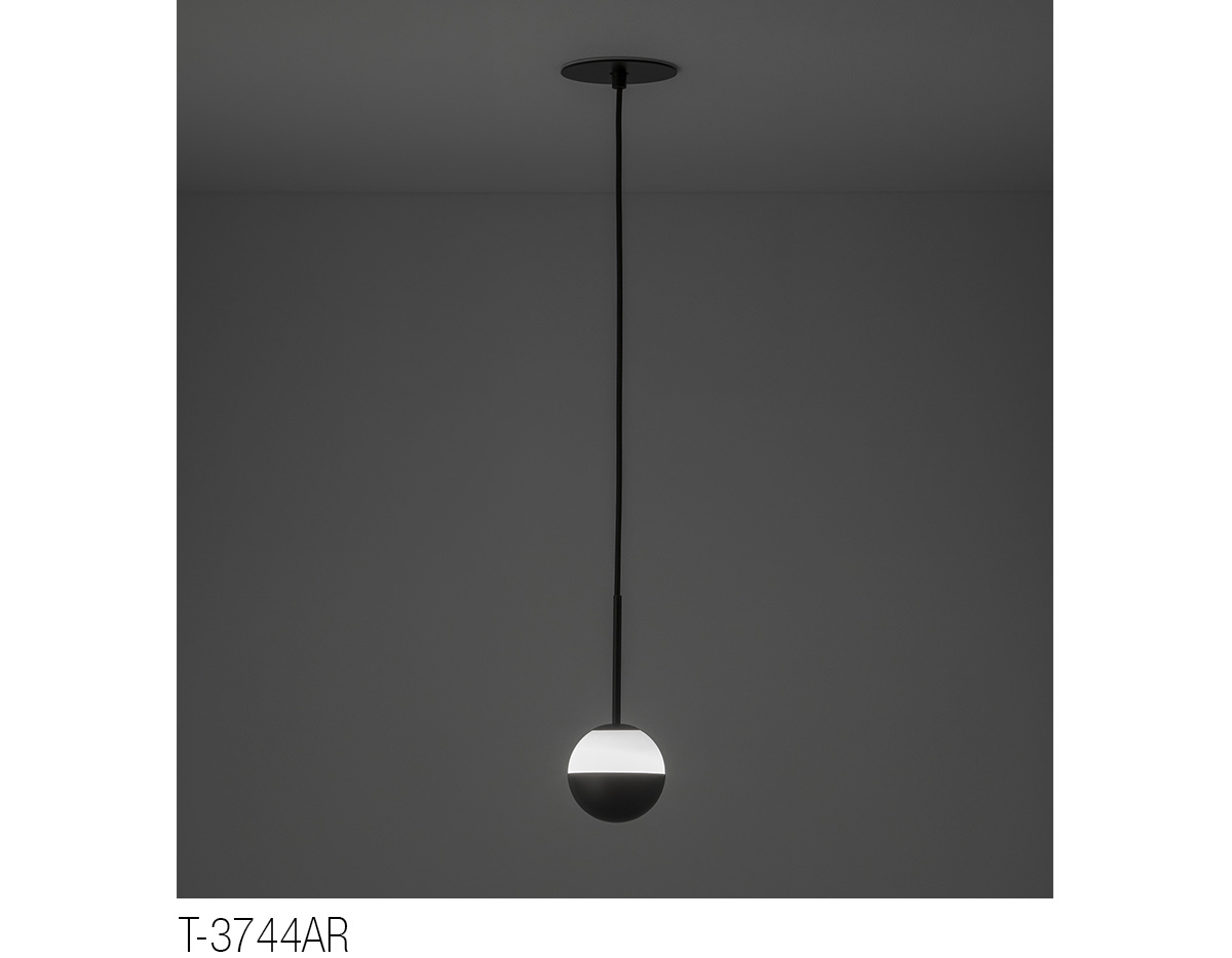 T-3744AR: Model with glass shade with cap and recessed canopy. False ceiling is required to place the remote driver.