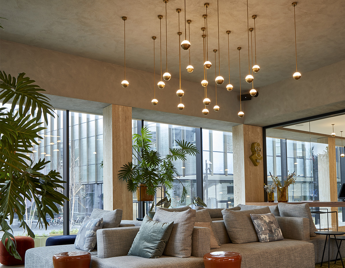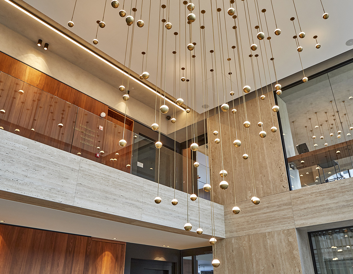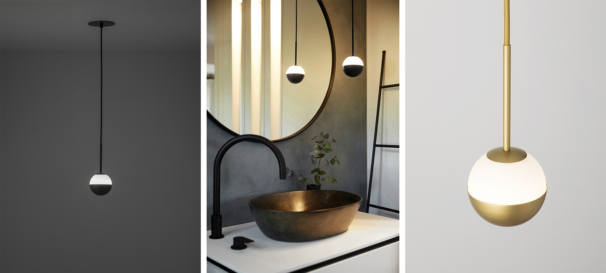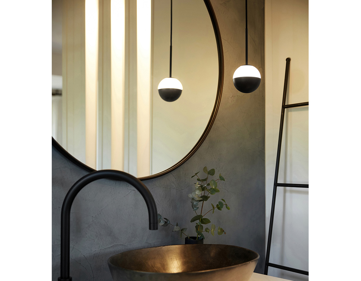 Indirect, dimmable LED light sculpture is suspended overhead with magical effect. Alfi pendants shows its versatility as a galaxy of orbs or a single planetary light.