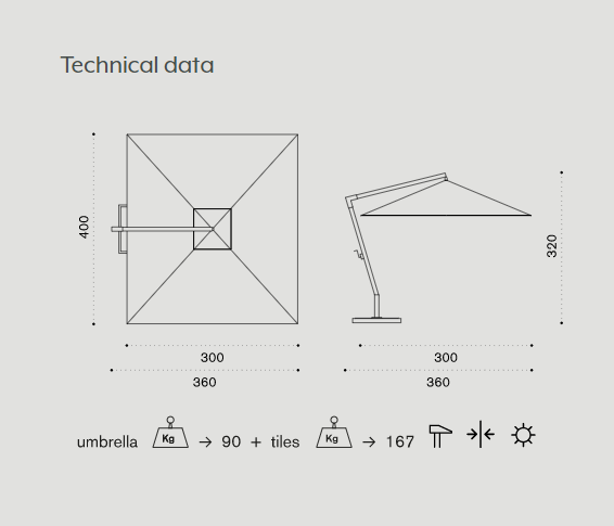 Supported by a natural wood post, with geometrically symmetrical lines, Holiday is a practical and essntial accessory for outdoor spaces.
