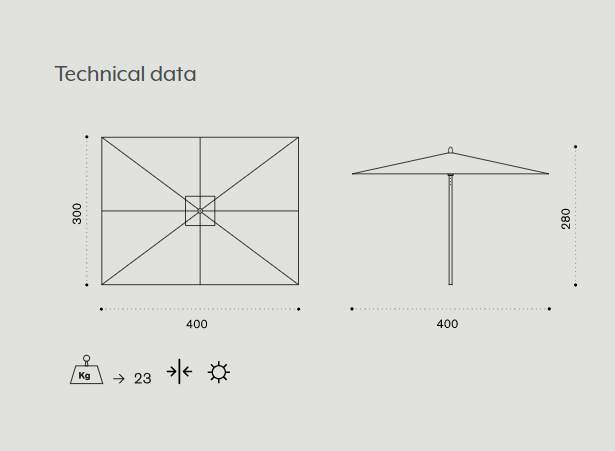 Available with bases of different types and in various colours inspired by nature, the Classic parasols are suited to infinite uses and combinations.