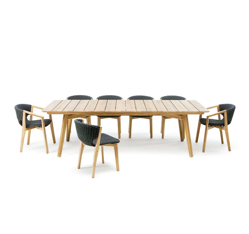 Kilt, the seat designed by Marcello Ziliani, available in versions with a teak or stainless steel structure, is able to express different looks and interpret the space that welcomes it.