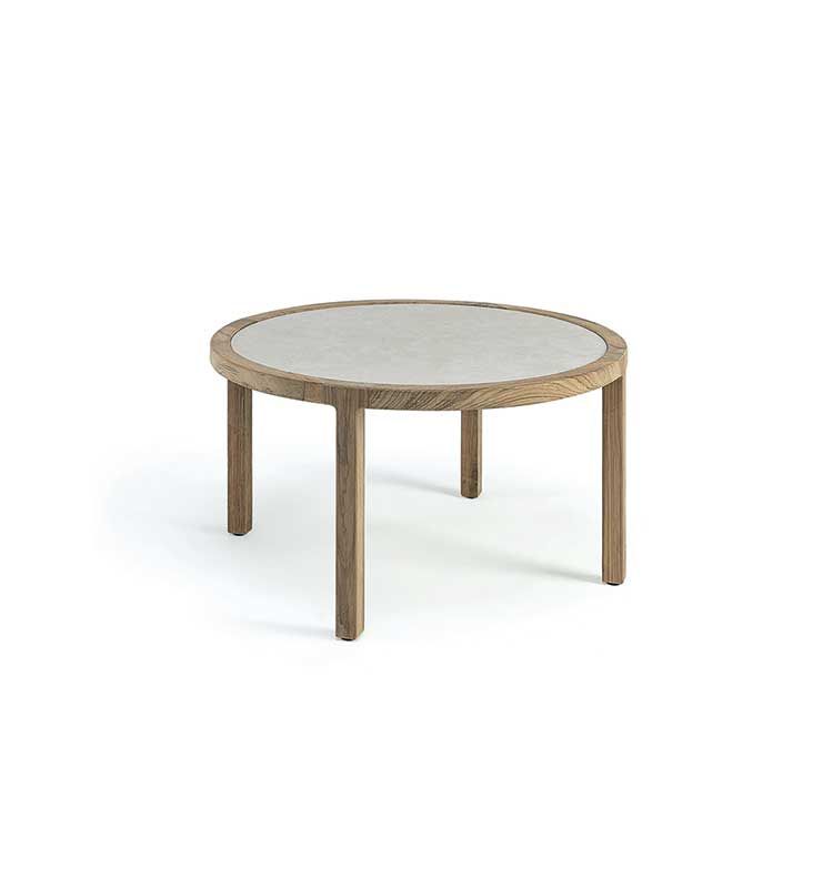A collection of lounge chairs destined for large and prestigious outdoor spaces. The pickled or natural teak structure with metal core is covered with large cushions that welcome the body with a feeling of deep and enveloping comfort.