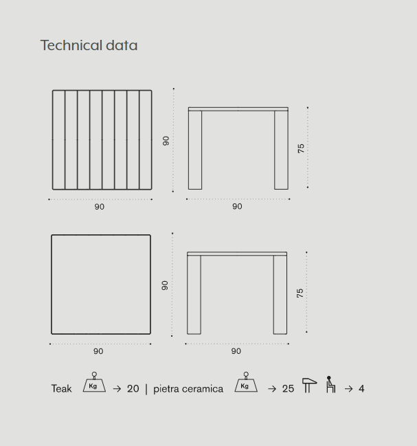 -Esedra Square table 90x90長餐桌