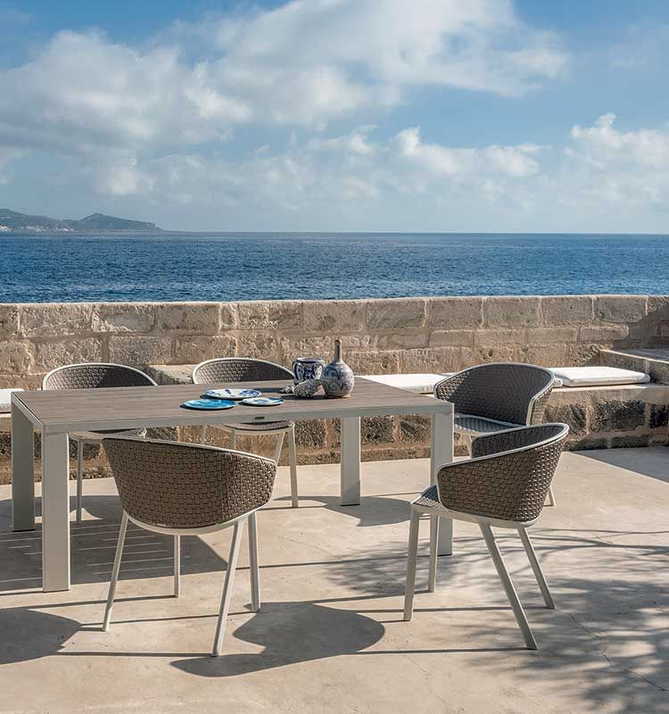 A natural harmony of lines and volumes characterises the Essenza collection, a wide–ranging and versatile solution for furnishing, relaxing and living in the open air. The inserting of brushed steel details in the teak frame creates a distinctive fusion of technology and nature.