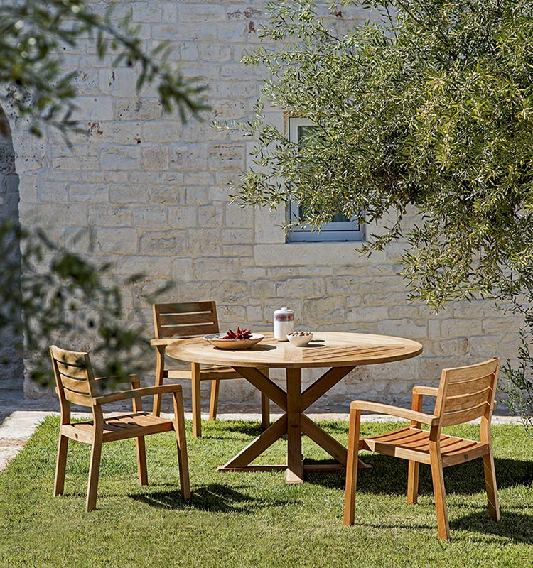 Made of natural or pickled teak, the Cronos tables collection recalls the artisan tradition of wood.