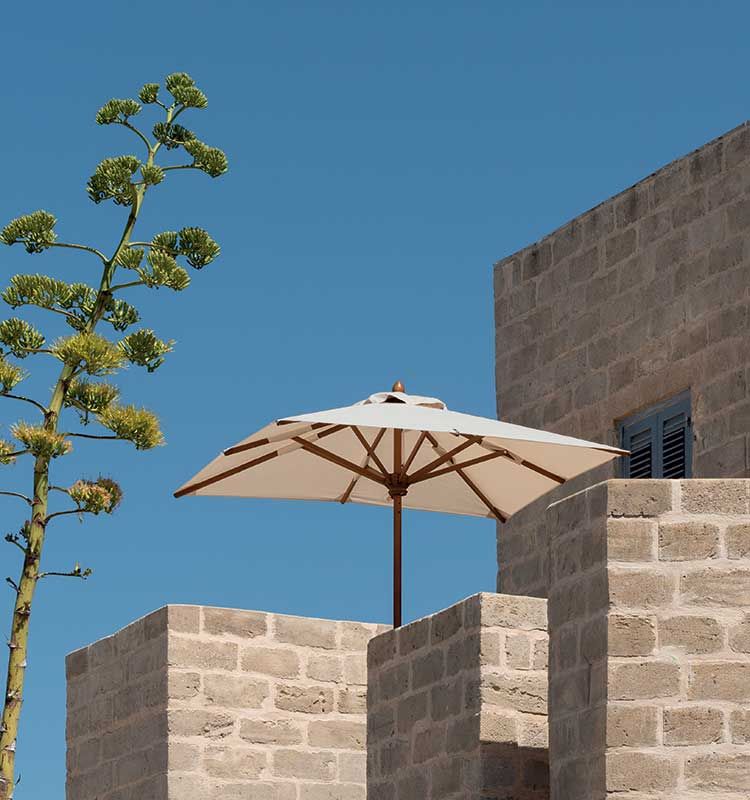 Available with bases of different types and in various colours inspired by nature, the Classic parasols are suited to infinite uses and combinations.