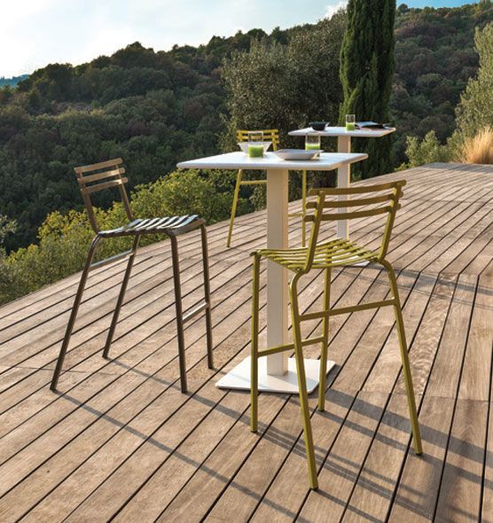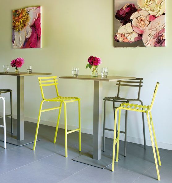 The Flower collection is a line of tables and chairs in which colored metal runs through the bright colors of nature.