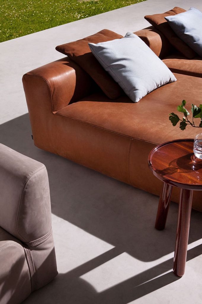 The abundant upholstered volumes bring to the outdoor the comfort usually dedicated to the interior design. The monolithic seat with no legs makes the sofa a single block of soft relaxing experience.