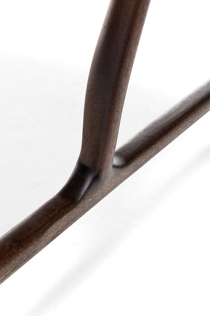 The structure is made of hand-carved mahogany components that flow into one another, inspired by nature and by the beauty of tree branches. Mahogany, a noble and extremely resistant wood, makes it possible to create this masterpiece with minimal sections and thicknesses to give it a feeling of extreme lightness.