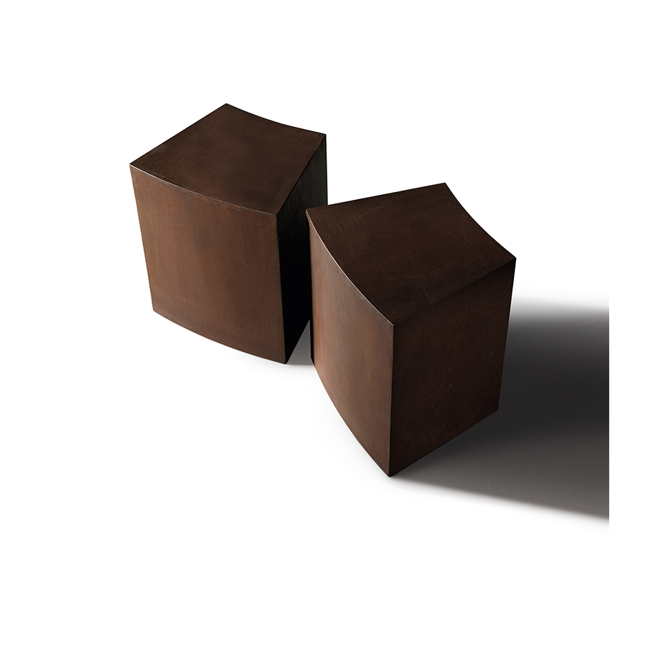 Essential volume and geometry for KETIL, conical section stool with laser-cut iron structure, available in satin, diamond or acid-etched metallic finishes. Practical and essential, but able to turn into a note of great charm and suitable for contemporary environments, commercial spaces and offices.