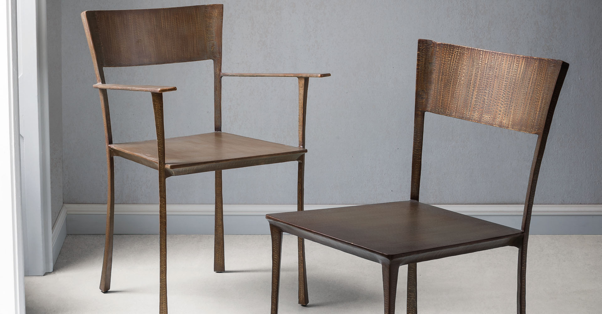 The angular silhouette of the SERENA chair has an antique flavor. Handcrafted in wrought iron and available in antiqued brass finish or in diamond or satin finishes, Serena aspires to represent an art object, which easily reconciles with the surrounding environment. Combining functionality, impeccable craftsmanship and strong charisma, the thin and elongated legs give this chair an elegant and sophisticated look, while its high backrest ensures comfort for the seat. Available with or without armrests.