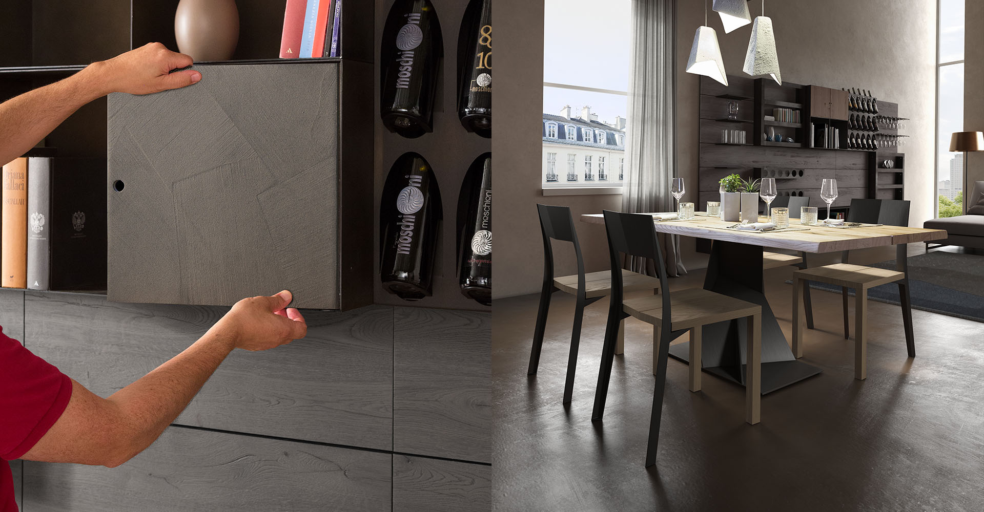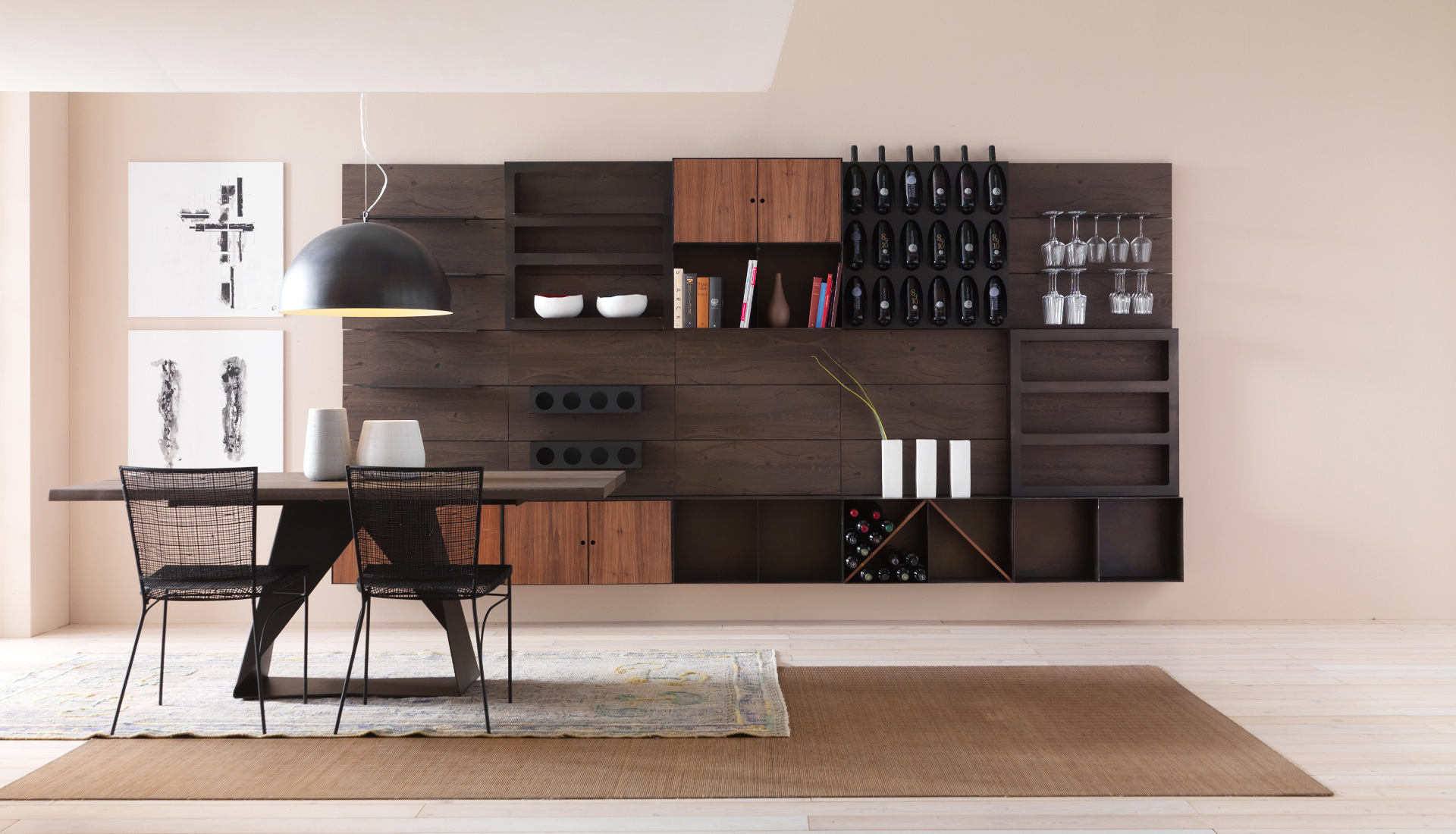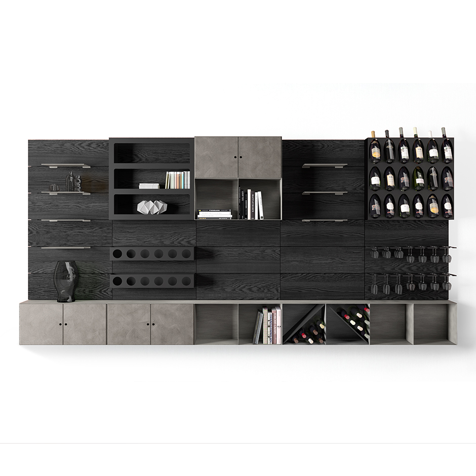 Designed to allow for expansion or reconfiguration at any time, the MODULO system adapts to spaces of different sizes and transforms its storage capacity. The wide range of customizations through the use of compatible accessories such as Win-O, Libreria del Vino, shelves, cup holders and containers, and the numerous materials that diversify the finishes, fully satisfy the most varied requirements. Modulo is a simple system, equipped with removable panels and adjustable doors. Multifaceted and versatile, it is also suitable for public spaces.