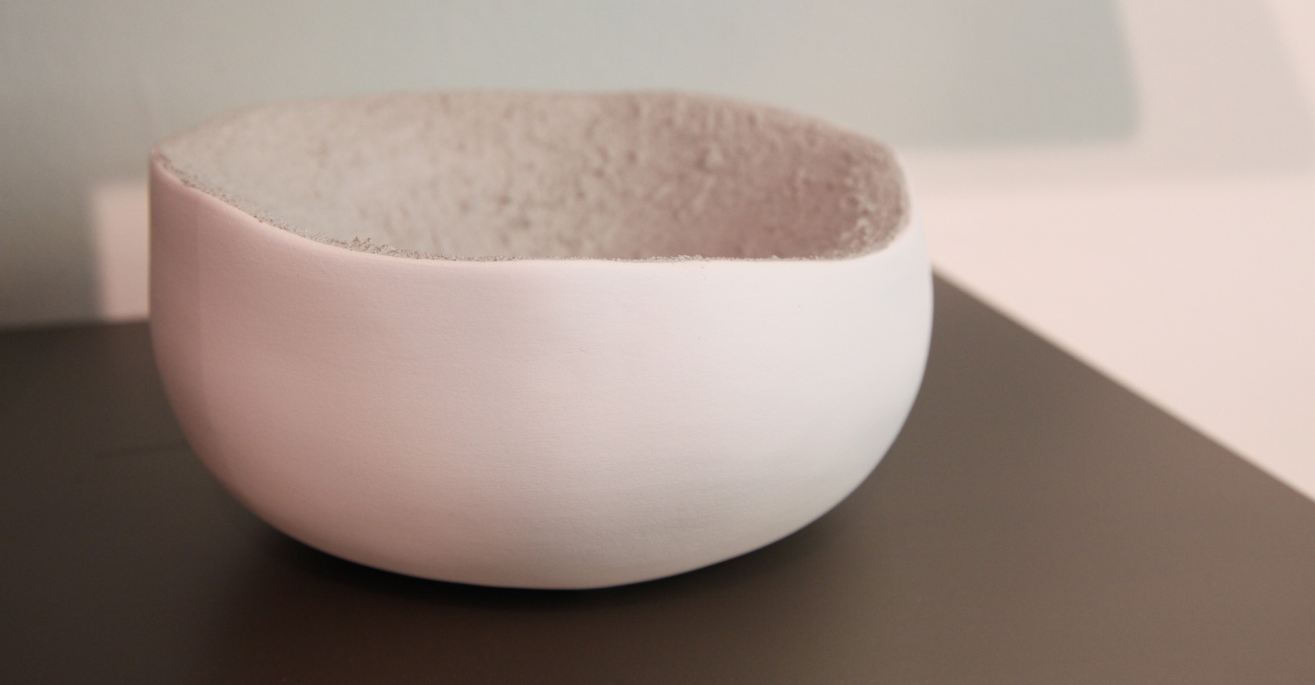 ll contrasto di colori e texture tra l'interno bianco, cemento o bronzo e l'esterno in smalto opaco bianco dà vita ad un oggetto dall'interessante contrasto tattile e visivo. La ruvidità o la lucentezza espresse dalle finiture e la sagomatura irregolare fanno sembrare questa ciotola la sezione di una pietra che cela al suo interno un prezioso minerale.