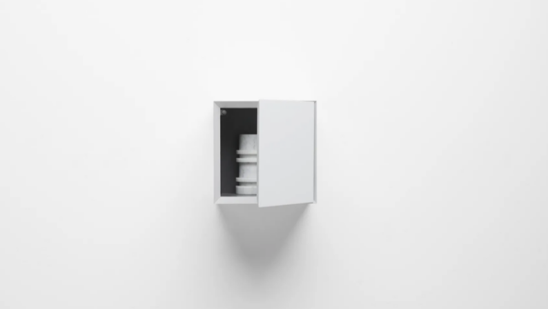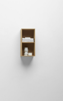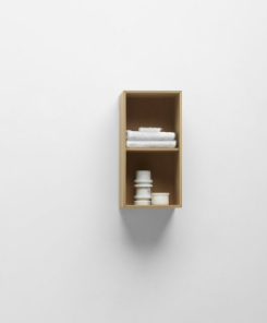 Mobile bagno contenitore con anta a battente, larghezza 25cm. Mobile con lavorazioni a 45° su frontali e corpo. Disponibile con apertura verso destra e verso sinistra con maniglia premi apri.