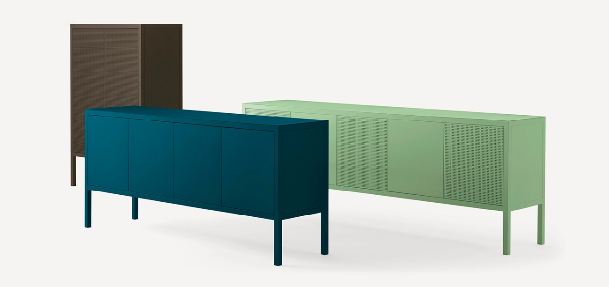 La collezione di madie e credenze Frame è contraddistinta da un design minimale nel quale il telaio in tubo quadro è sempre in vista. Il top, sottile pochi millimetri, è in metallo così come le due versioni di ante – piena e forata – che permettono diverse composizioni sulla varie modularità e che rendono la collezione adatta in qualsiasi contesto, insieme alla sorprendente scelta fra le 40 finiture Fantin.