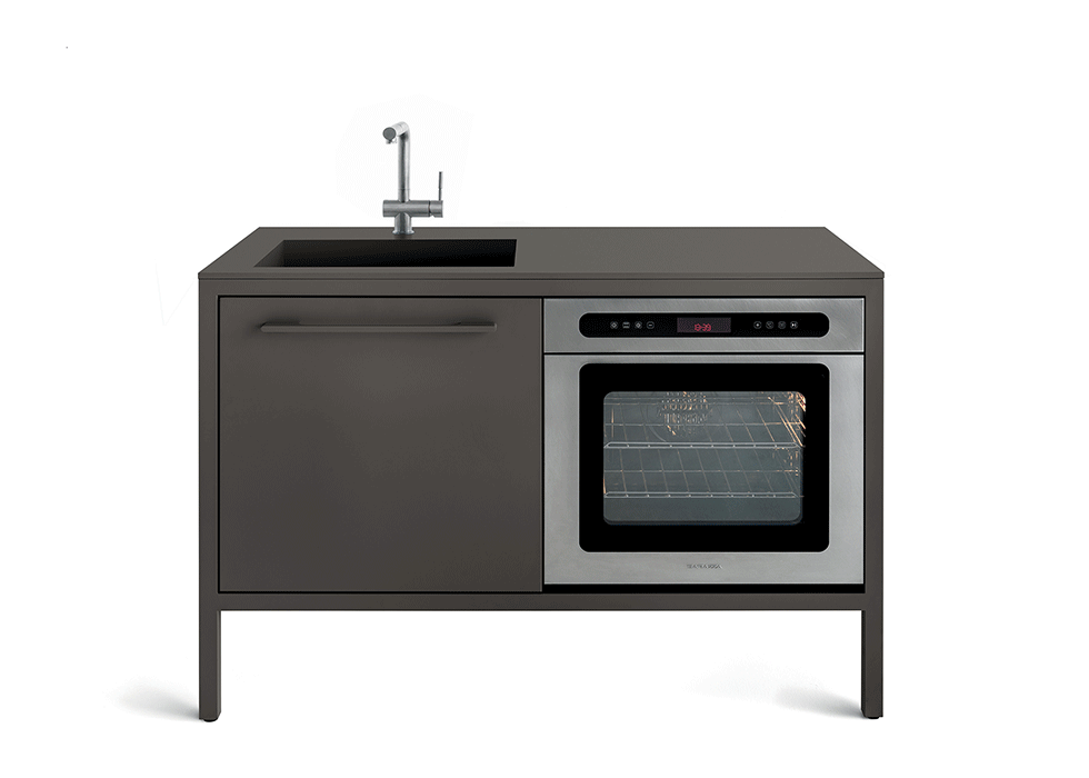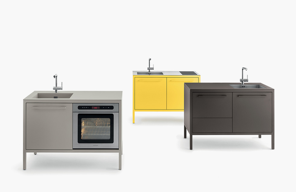 Le cucine Frame sono proposte a 2 o 3 moduli, con top in acciaio Barazza o in Fenix NTM. L’acciaio – in finitura Vintage o satinata da 4 mm – è abbinabile con tutte le finiture Fantin, mentre i top in Fenix NTM sono proposti con telai nelle finiture Ultra-matt perché esattamente corrispondenti per colore, opacità e morbidezza al tatto. è così possibile ottenere cucine monocromatiche dalle solide strutture in metallo Fantin e con top resistenti e ripristinabili.