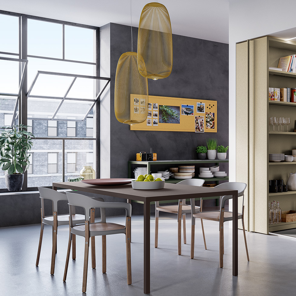 Non-toxic powder coating for interior use, with no heavy metals. Cured in an oven at 190°C, following degreasing and phos-phating. Guaranteed minimum thickness of 50 microns. Minimum resistance to salt spray of 200 hours (in accordance with the ASTM B117 standard). Some finishes are suitable for direct contact with food as re-quired by Italian Law Decree D.M. 21/03/73 and subsequent updates. Before the coating is added, it is possible to assess whether to give the products a special treatment to make them more resistant to wear and exposure to the elements. There is a surcharge for this treatment. Requests for