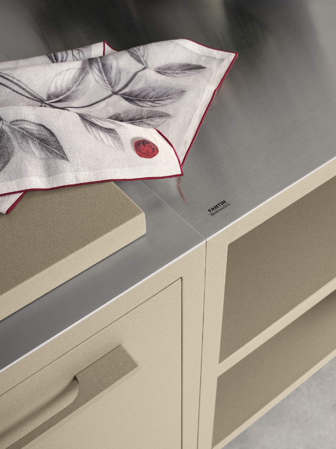 Kitchens and benches from the Frame range are also suitable for outdoor use thanks to a cataphoretic coating that prevents rust.