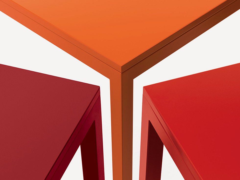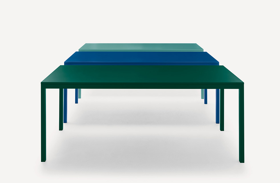 Caratterizzato da linee semplici e rigorose, è composto da una struttura in tubolare quadrato che sostiene il top.