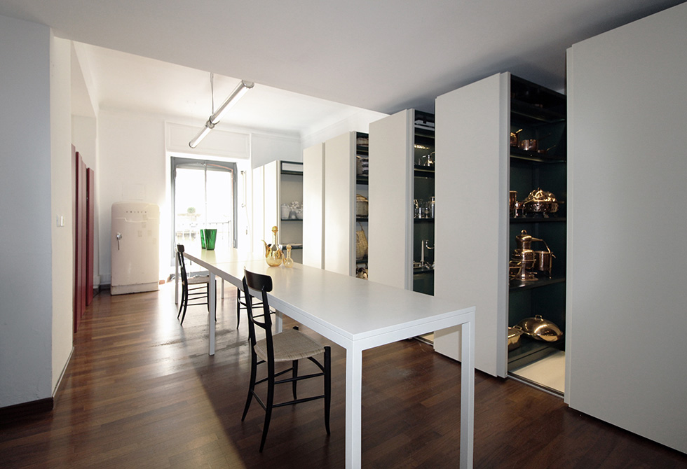 L’utilizzo esclusivo del metallo permette di avere un oggetto monometrico, in tutte le declinazioni cromatiche della collezione Fantin.