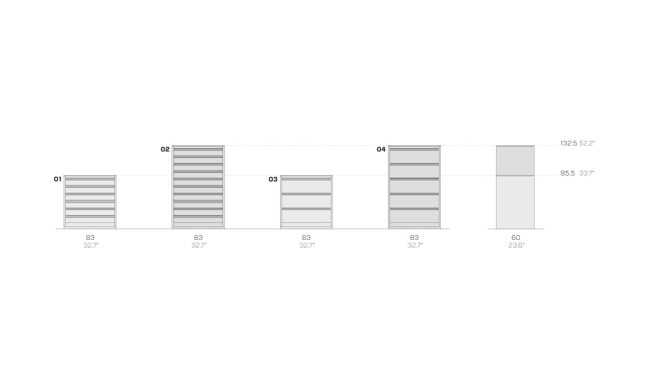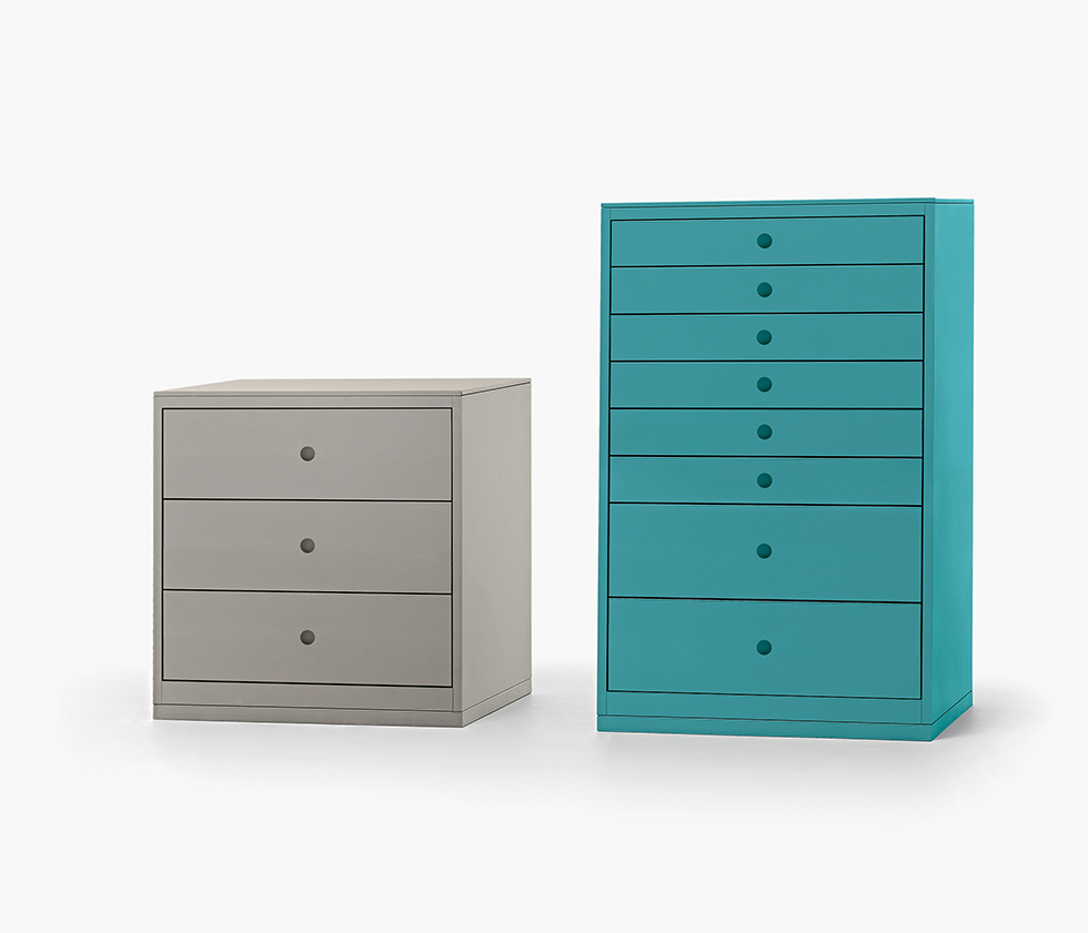 Dotato di cassetti con guide telescopiche, Opera risponde con flessibilità e funzionalità a tutte le esigenze di contenimento. La coerenza fra la resistenza del metallo e la forma compatta è arricchita da dettagli di prestigio per un prodotto resistente a qualsiasi utilizzo e razionalmente adatto in ogni ambiente.
