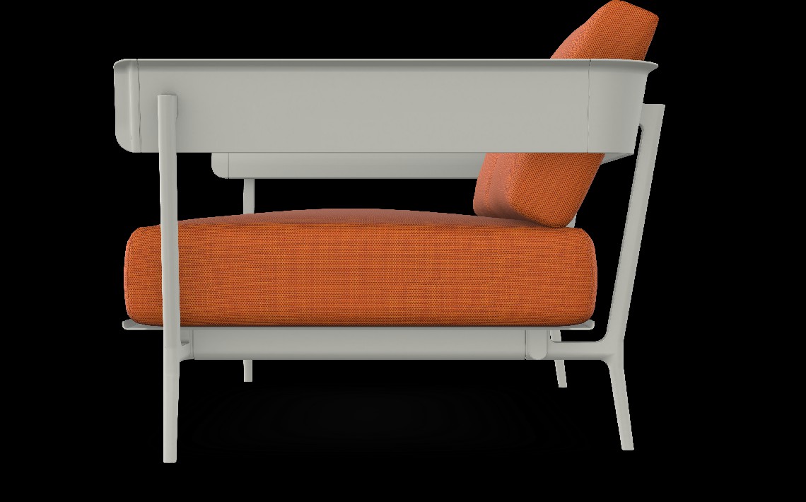 A genuine outdoor sitting room: Aikana is a system of individual and modular elements to be combined to your liking and create either roomy or cosy settings. The frame is made of die cast and extruded aluminium and the cushions are fully removable. Available also in the waterproof version, these cushions are resistant to rain, humidity and moisture, stains and dust: they do not need to be stored away indoors nor do they need to be covered.