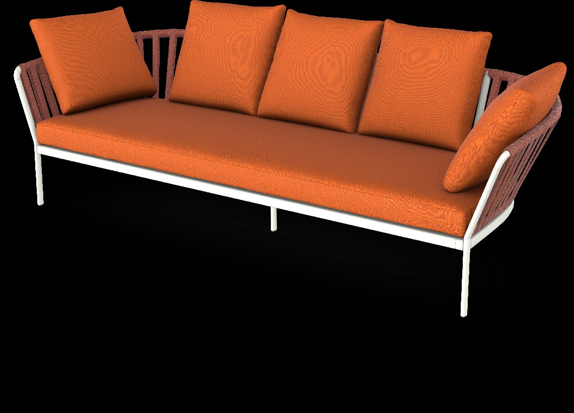 The Ria collection includes: dining armchair in the aluminium, partially woven rope, fully woven rope and with quilted backrest versions, 2/3-seater sofas, armchair, lounge chair and daybed in the woven rope versions.