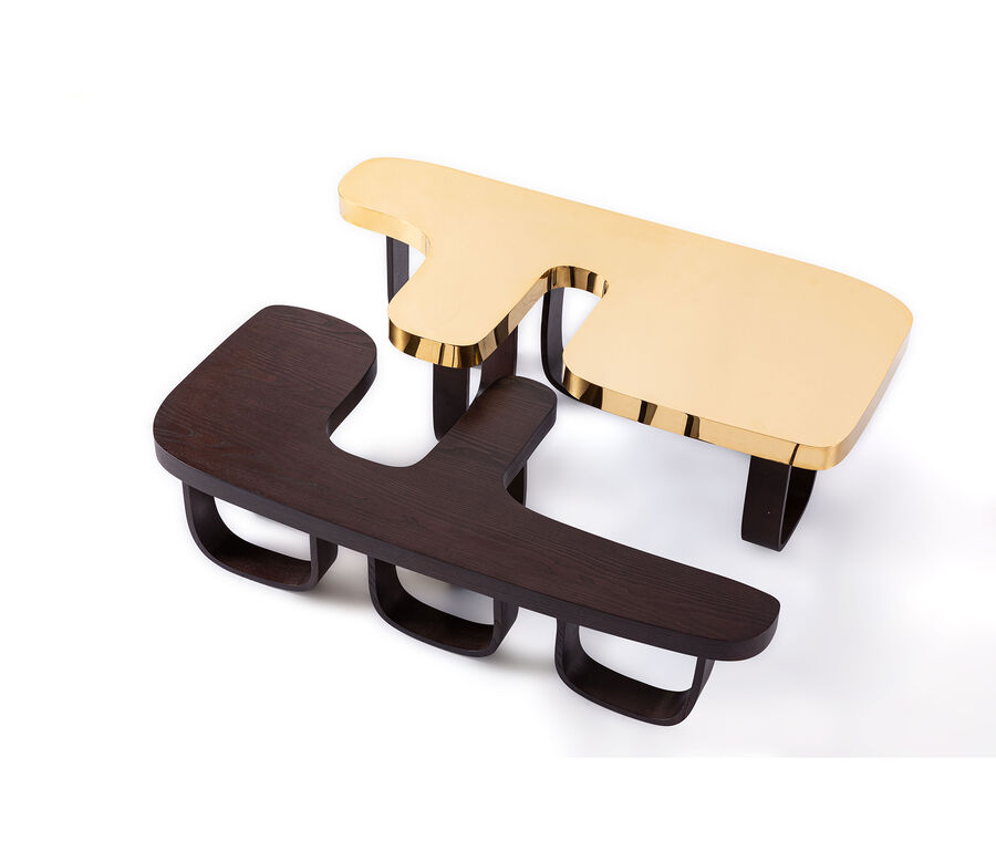 Pairing metal and Panga Panga wood, two very distinct materials, Mabeo Studio have created an eye-catching coffee table. The Efo table takes the iconic Fendi double F logo and transforms it into a unique piece that brings the worlds of design and craft together. Two modular sculptures nestle within each other, simultaneously retaining their independence.