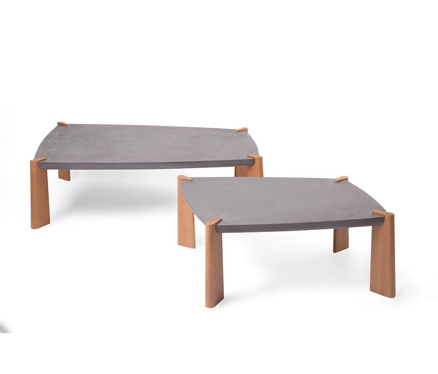 As befitting its name, the Menhir coffee table evokes the grandness of the megaliths of the Neolithic Age. The imposing cement top rests upon wooden legs, in a material contrast that harks back to ancient times. The harmonious rhythm between the various elements creates a sophisticated and contemporary piece of design. Available in two sizes, it brings a sense of order and calm to any décor setting.